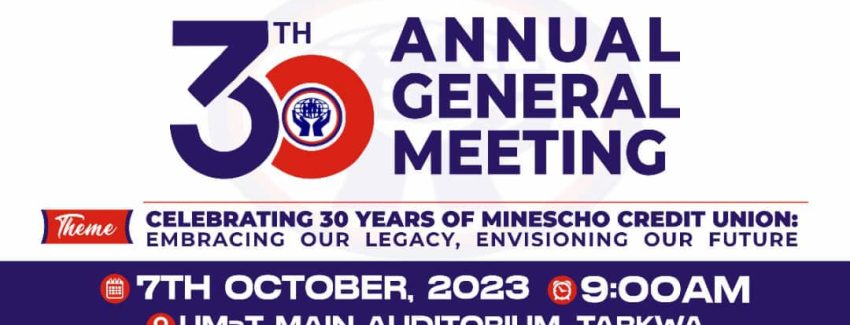 Minescho Co-operative Credit Union is delighted to invite all members and the general public to its 30th Annual General Meeting (AGM) as we celebrate three decades of commitment to financial empowerment, growth, and community development. This milestone is a testament to the trust and loyalty of our members and the unwavering dedication of our team in ensuring financial security for all.